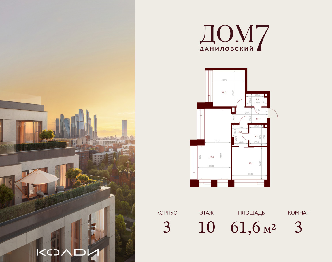 Купить 3к квартиру 61 м² в ЖК Дом 7 Даниловский