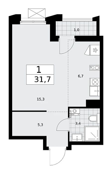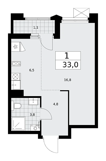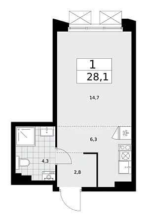 Купить 1к квартиру 28 м² в ЖК Деснаречье