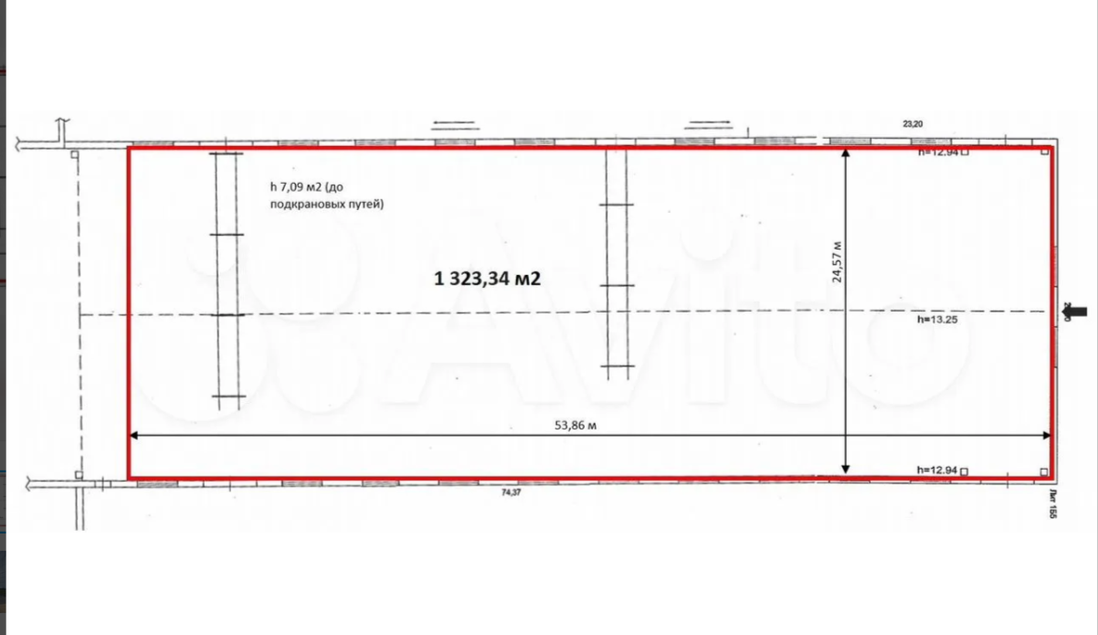 Арт. 122706970 Склaд 1296 м2 (возможно cтeллaжнoe хранeниe ) или под пpоизвoдствo.