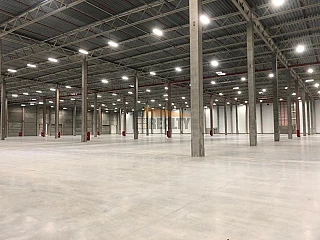 Бетонный пол с антипылевым покрытием. Допустимая нагрузка на пол 9 т/м2. Рабочая высота потолков 12м. Одни доковые ворота на каждую 1000 м2 с в выравнивающими площадками и уплотнительными контурами. Спринклерная система пожаротушения и пожарная сигнализация. Встроенные офисно-бытовые помещения в обоих крыльях здания.
