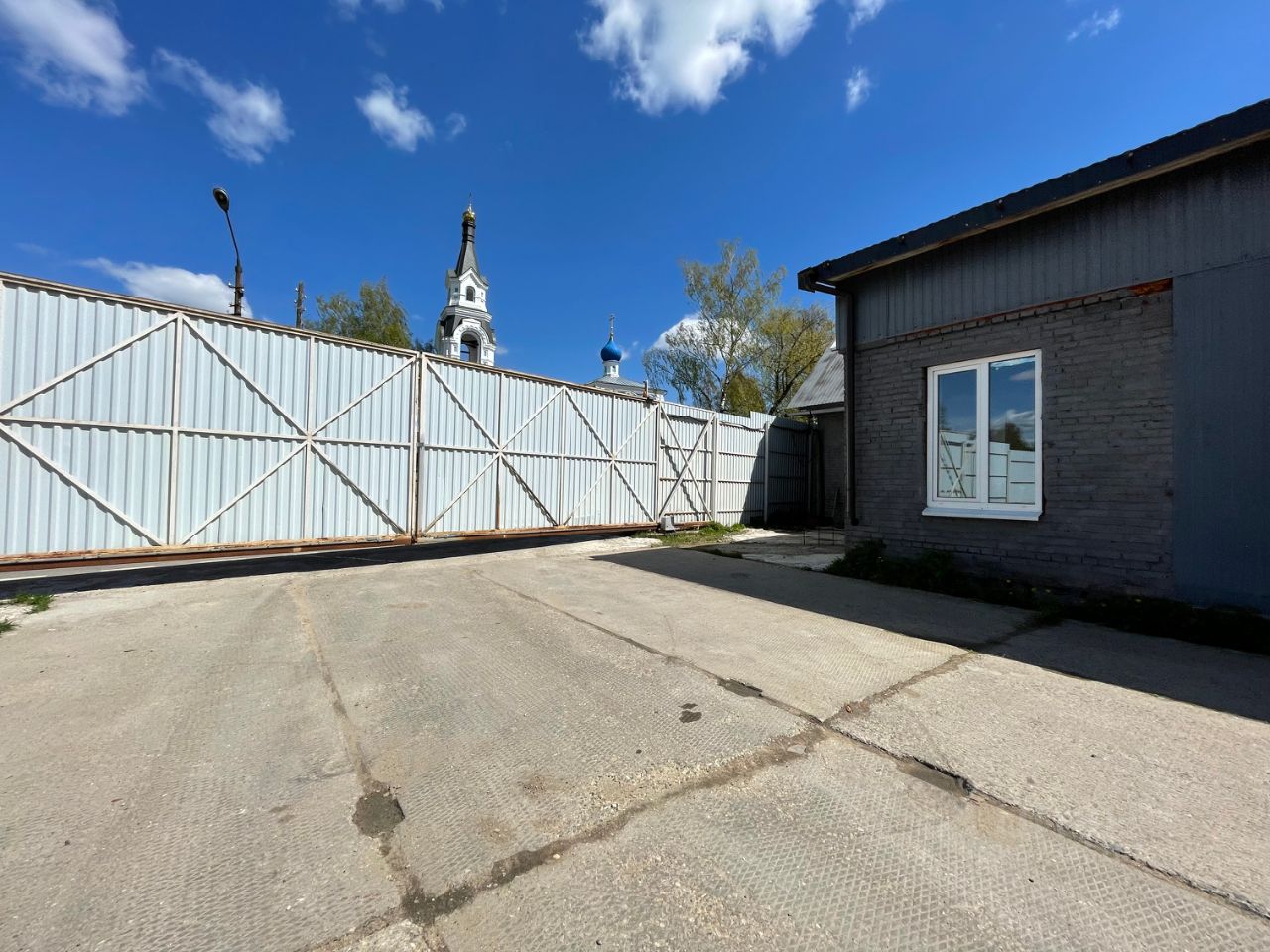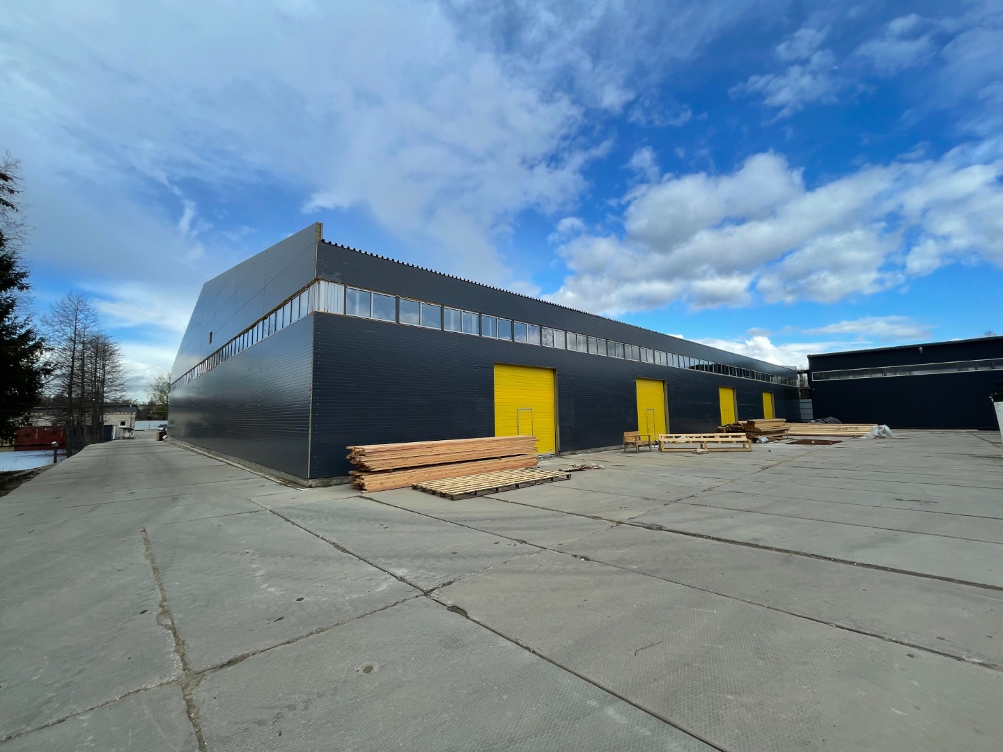 Большая площадка из асфальта около склада может быть использована для парковки.