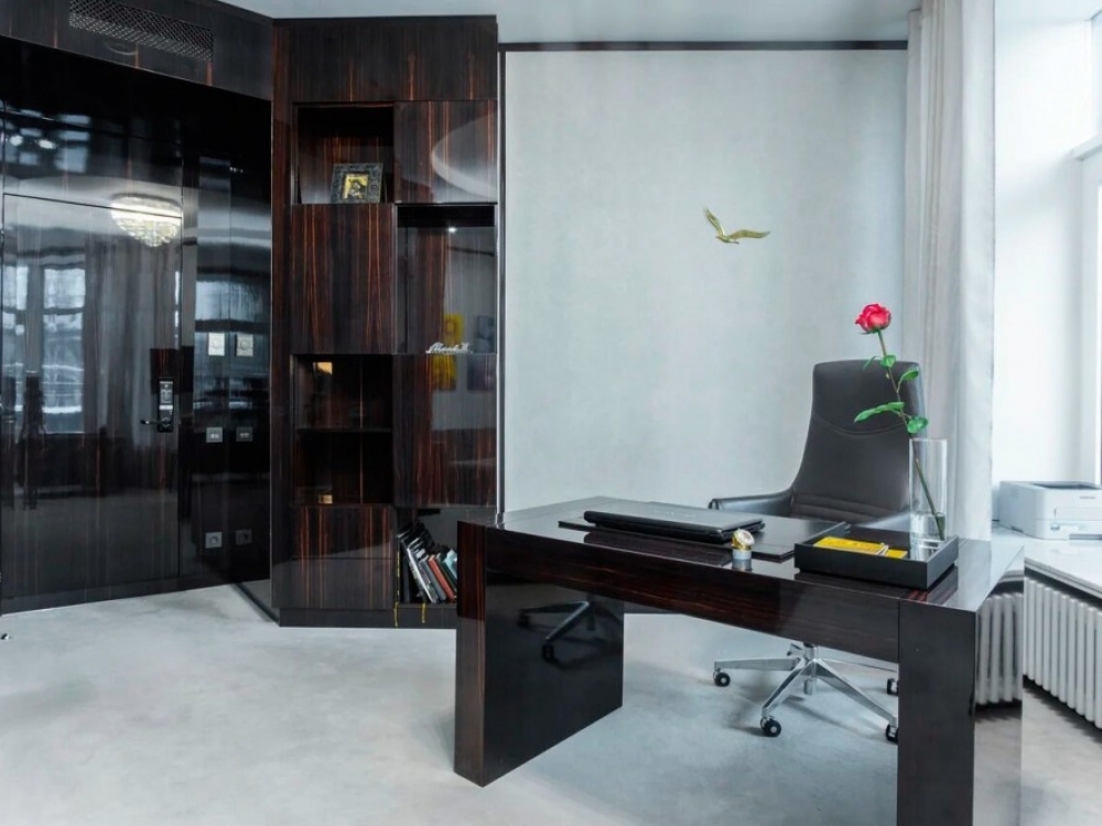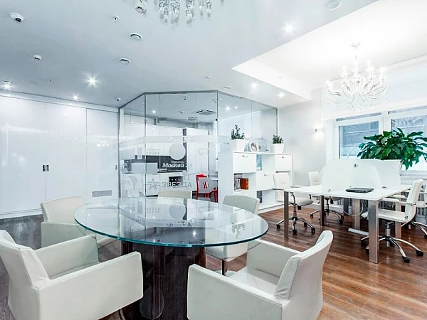 . Помещение находится на 3 этаже общей площадью 140 м2. Состоит из двух частей - офисная часть 84м2 (оборудована на 10 сотрудников, с переговорной, отдельным санузлом и кухней) и зона руководителя 30м2 с отдельным с/у. Офис категории люкс, выход на террасу