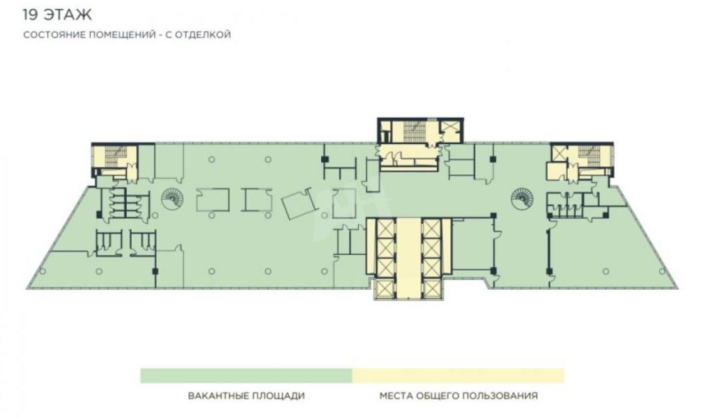 Лот №960400 Предлагается к аренде офисное помещение общей площадью 1918,63 м², расположенное на 19 этаже здания в 2 км от Москвы.