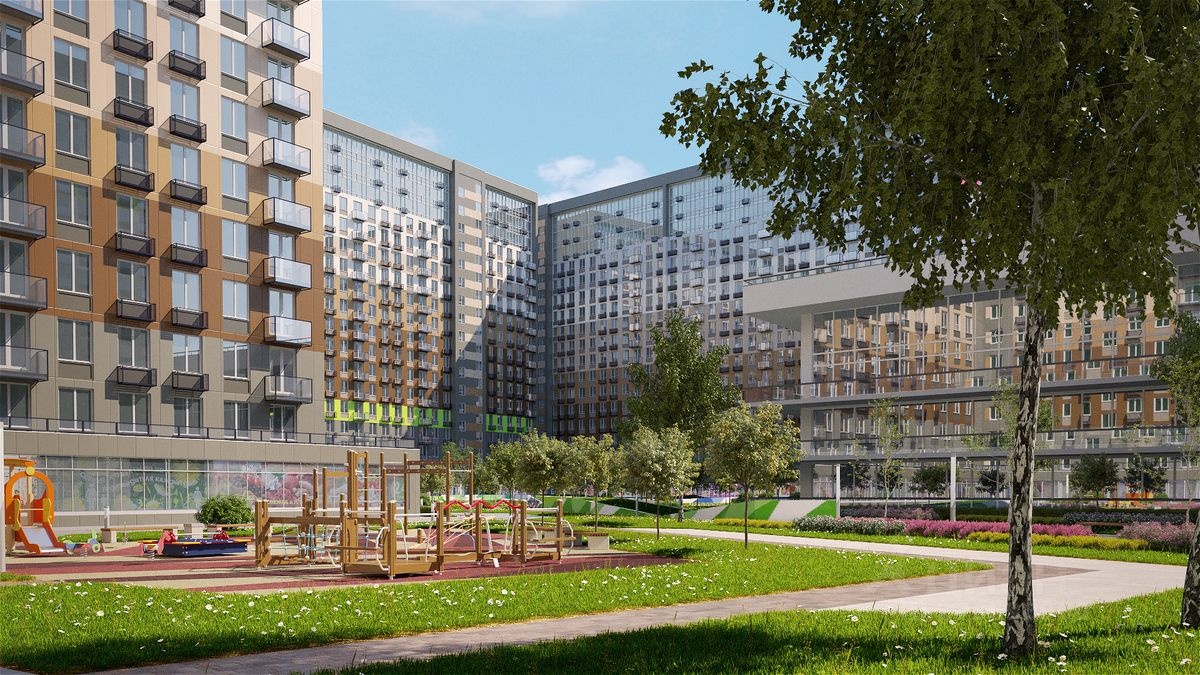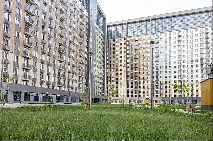 На самой территории комплекса детский сад и спортивный центр, торговый центр с небольшой открытой парковкой. Во дворах много зелени, обустроены дизайнерские клумбы, смонтированы игровые и спортивные площадки, организовано уличное освещение в виде высоких металлических фонарей. Для отдыха расставлены лавки, в целях благоустройства размещены арт-объекты.