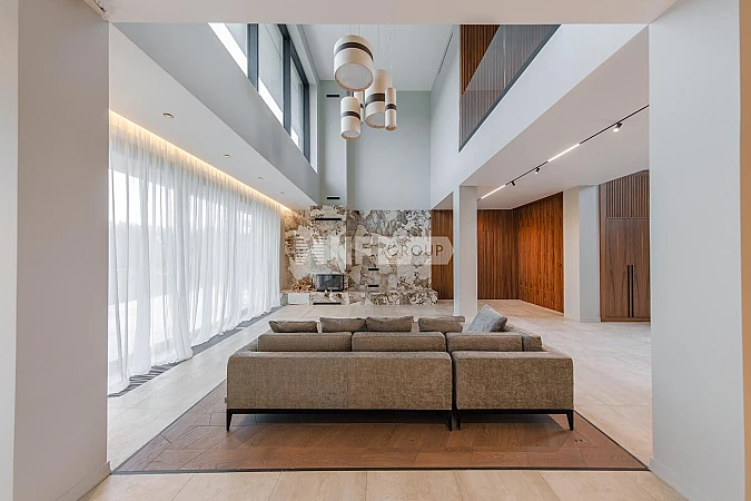 Архитектура дома поражает своим величием и изяществом. Панорамное остекление открывает потрясающие виды на окружающий ландшафт, позволяя наслаждаться красотой природы в любое время года. Внутреннее пространство дома продумано до мелочей: семь спален и десять ванных комнат обеспечивают комфорт и приватность для каждого члена семьи. Особое внимание уделено зоне отдыха, где расположены бассейн и SPA-комплекс, создающие атмосферу роскоши и расслабления.