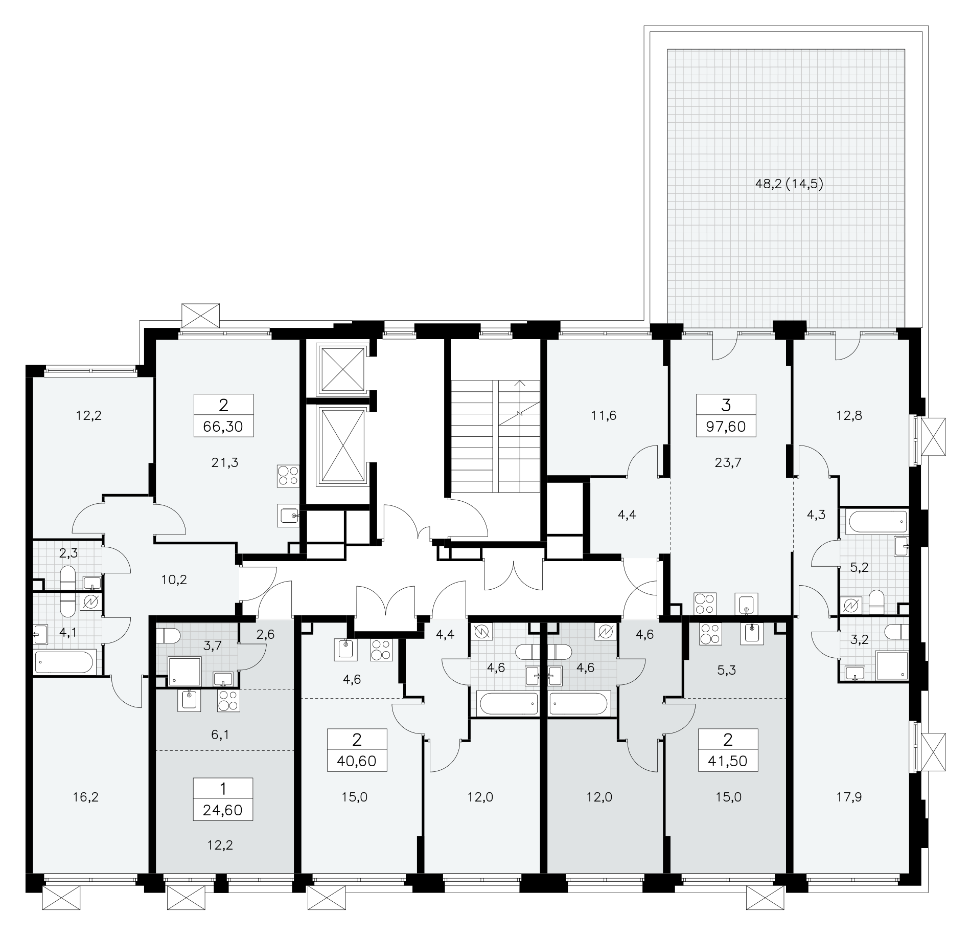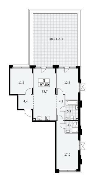 Идеальный вариант для большой семьи, ценящей комфорт и простор! Сердце квартиры — кухня-гостиная: Просторное помещение площадью 24 кв.м., где легко разместится обеденный стол на всю семью и мягкий уголок для отдыха. Отличное место для приёма гостей и вечеров в кругу близких.