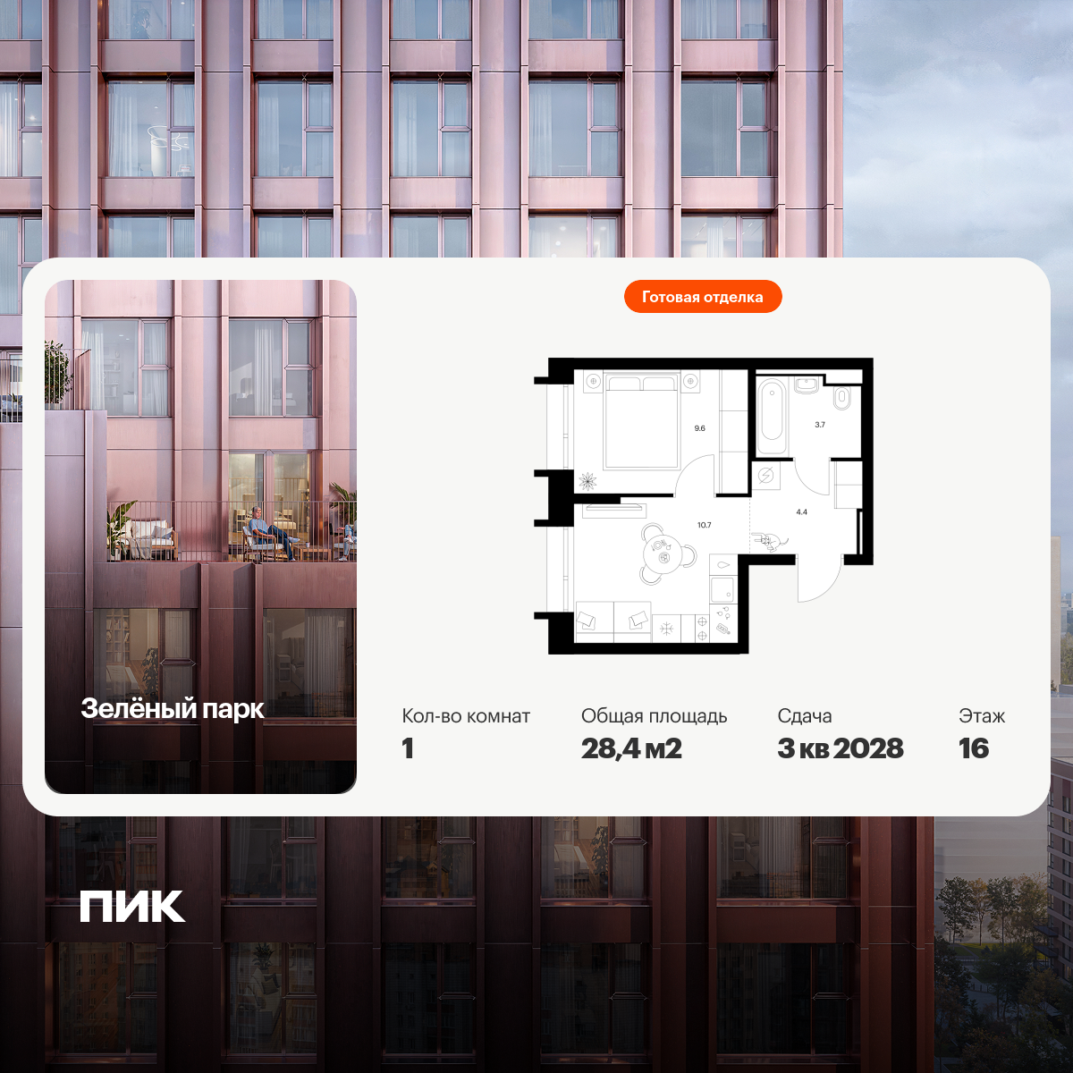 Купить 1к квартиру 35 м² в ЖК Зелёный Парк