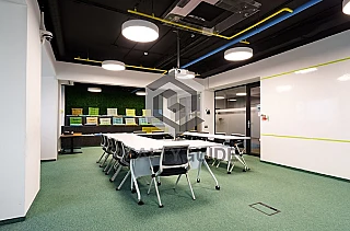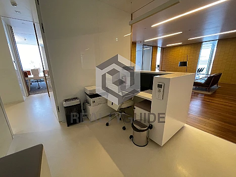 В каждом блоке есть есть зона ресепшн, переговорные комнаты разного формата, рабочая зона open space и отдельные кабинеты, кухня с обеденной зоной, гардеробная. Отдельный вход. Этаж: 9. Планировка: смешанная. Офисная отделка. Высота потолка: 3.3м. Тип налогообложения: С НДС. Коммунальные платежи оплачиваются отдельно.