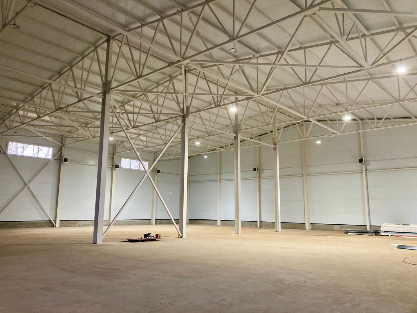 Высота потолка: 12м до конька, 10,97м до балок.