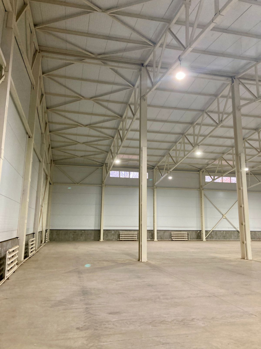 Высота потолка: 12м до конька, 10,97м до балок.