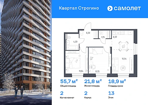 Продаются 2-к апартаменты площадью 42.5 кв.м. на 16-м этаже 28 этажного дома в "Emotion" от ГК ОСНОВА