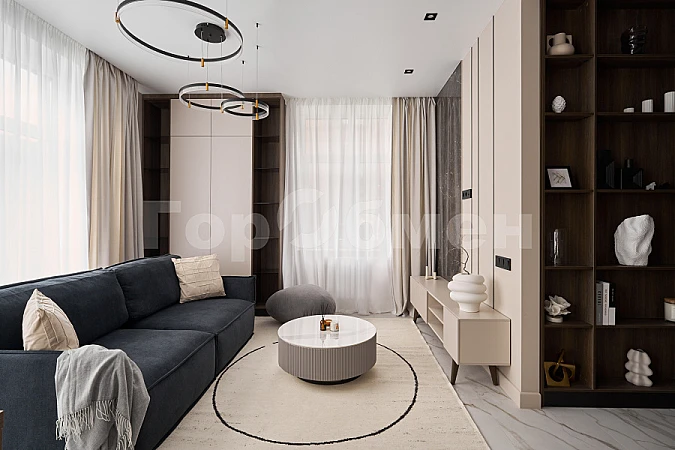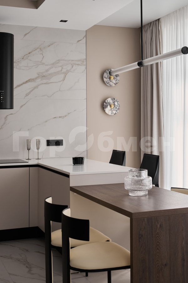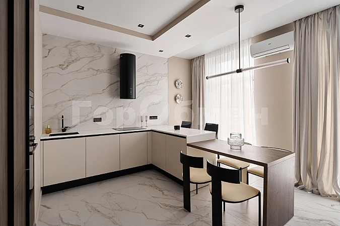 • Кухня-гостиная с встроенной техникой и дизайнерской мебелью