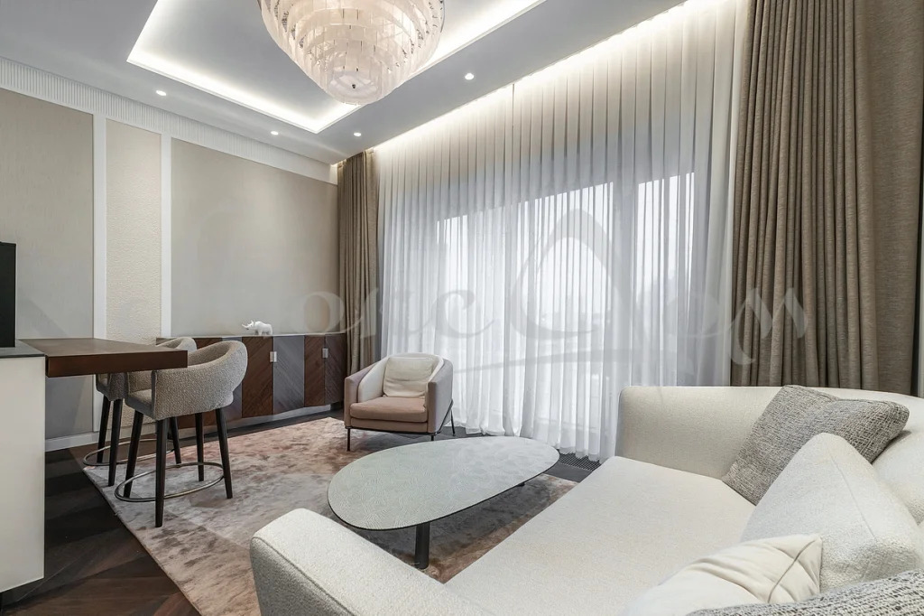 В квартире выполнен качественный ремонт с использованием премиальных материалов. Установлен умный дом - все выключатели расположены максимально эргономично! Топовая бытовая техника: v-zug, gaggenau, miele, имеется винный шкаф . В квартире жили крайне мало - все как новое!