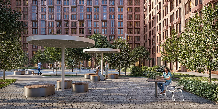 Во внутреннем приватном дворе-парке будут детские и спортивные площадки. А для занятий спортом будут обустроены воркаут-пространства.