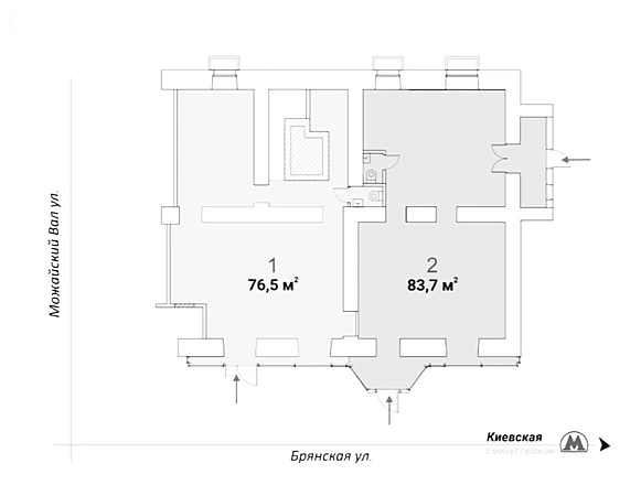 Прямая видимость от метро.