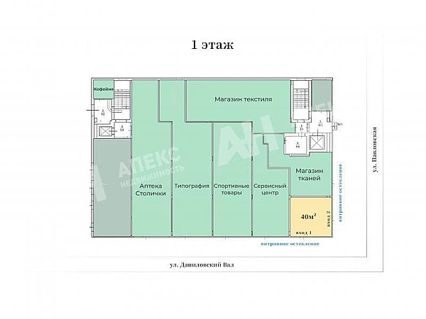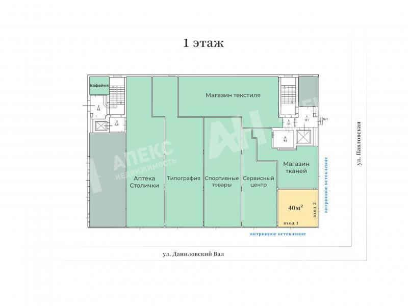 Первый этаж. ДВА отдельных входа. Витринное остекление, высокие потолки 3,6 метра и свежий ремонт. Вывеска может выть размещена на две стороны здания. Три интернет-провайдера.