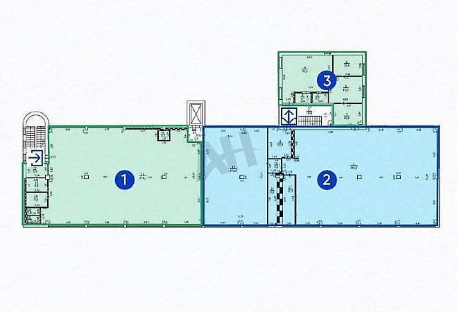 Помещение расположено на третьем этаже здания, соответствует блокам № 2 и 3 на плане. Продажа возможна без действующего арендатора. Объект выполнен с качественной отделкой, имеет свободную планировку и два отдельных входа в блок. Высота потолков составляет от 3 до 4 метров. В блоке оборудован собственный санузел, подключены центральные коммуникации. Для арендаторов и посетителей доступна наземная парковка на территории комплекса. Недавно были полностью завершены ремонтные работы по фасаду здания.