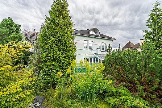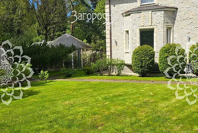 Участок 15 соток: дом для прислуги, баня с душевой и кухней, бассейн с подогревом, беседка, зона барбекю с дровяной печью. под ИЖC. Участок огорожен кирпичным забором (высота 3 м). Коммуникации: газовый котел, магистральный газ, водоснабжение из собственной скважины, канализация - септик, электричество мощностью 25 квт.