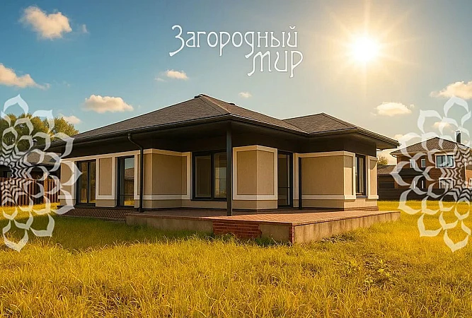 Лот 69243. Лужки. Дом в охраняемом коттеджном поселке "Подмосковные просторы". Кирпичный, одноэтажный дом, внешне оштукатурен и покрашен.