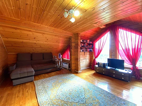 Такой дом отлично подходит для комфортного круглогодичного проживания семьи из 3-5 человек. Он очень приятный, надёжный, светлый, тёплый, уютный, расположен на ухоженном участке 17 соток. Растут плодово-ягодные деревья и кустарники, малина ремонтантная, голубика несколько кустов, яблони. Также растут большие деревья, которые создают тень и придают участку особый уют. В шаговой доступности есть родник с очень вкусной водой. Автобусная остановка также в 300 метрах.
