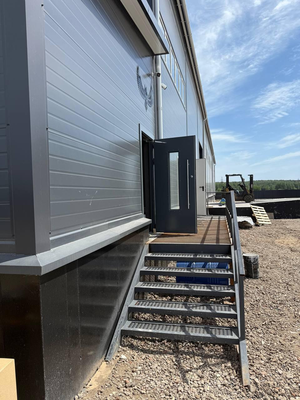 Параметры: пандус для погрузки/разгрузки, подъемники, беспылевые полы, 2 ворот.