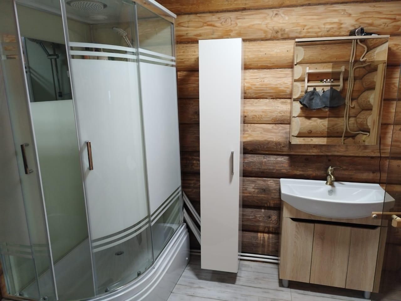 Ванная комната с душевой кабиной, туалетом, умывальником.