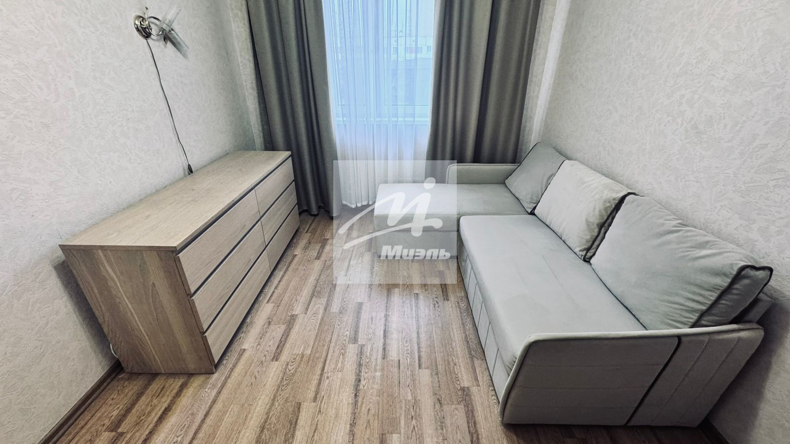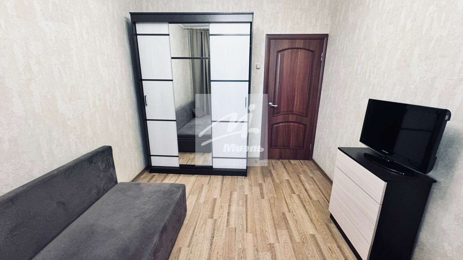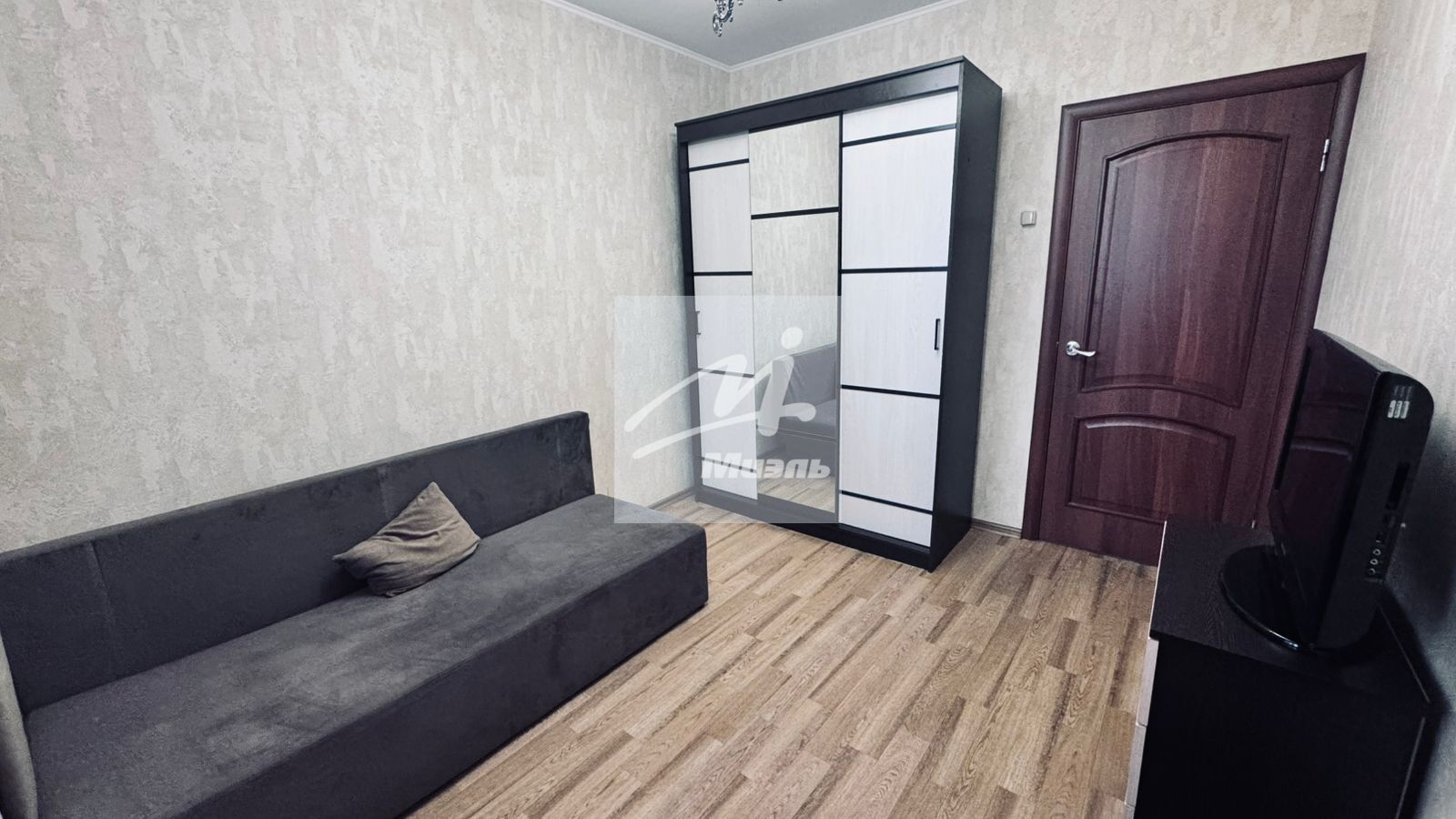 В спальнях есть диваны,шкаф-купе, комод, телевизор.