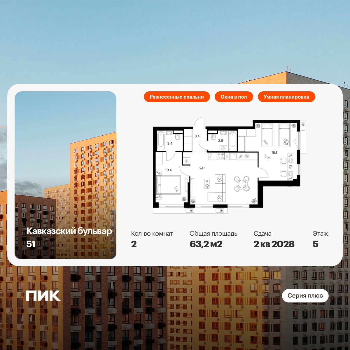 «Кавказский бульвар 51» — современный жилой квартал в районе Царицыно. Проект частично реализован: здесь можно купить квартиру со сдачей в 2025-м или выбрать жильё повышенной комфортности в корпусах «Серии плюс» с продуманной архитектурой.