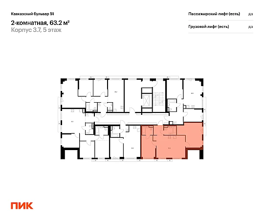 Продаётся 2-комн.квартира площадью 63.20 кв.м на 5 этаже 7 этажного дома (Корпус 3.7, секция 4) проекта ПИК Кавказский бульвар 51. Светлый просторный подъезд на уровне земли, функциональная планировка, большие окна, с отделкой.