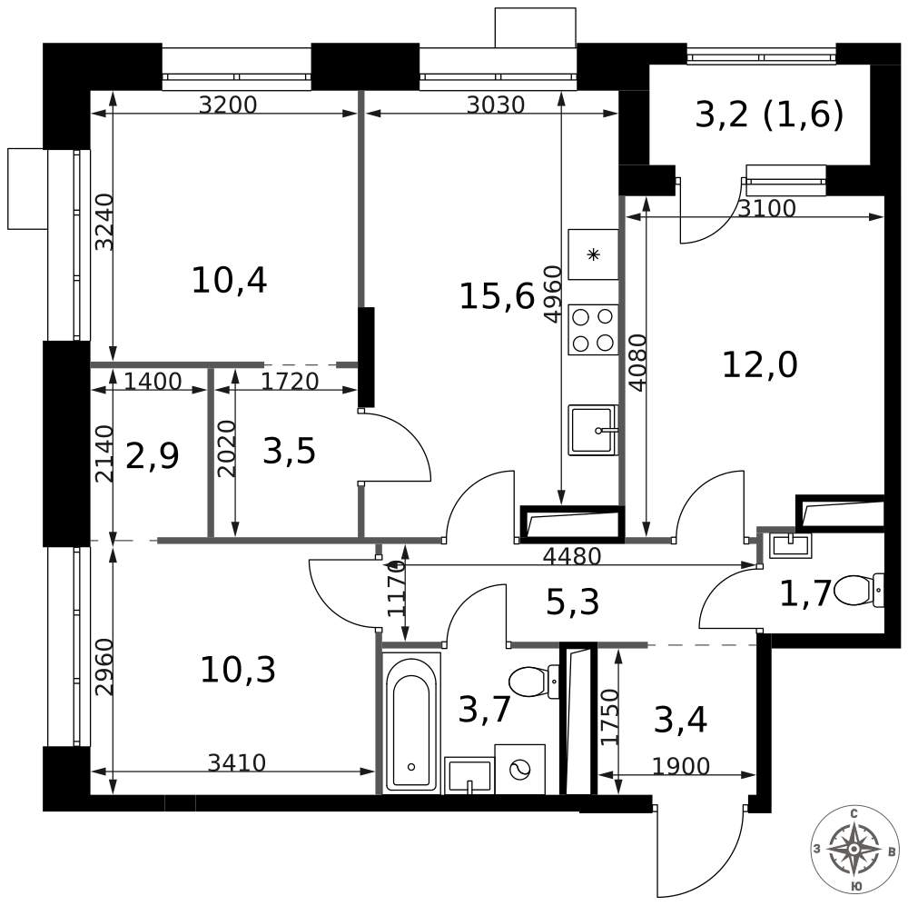 Прямая продажа от застройщика! Кладовая номер 208 общей площадью 2.1 кв. м на 20-м этаже в ЖК «1-й Саларьевский»