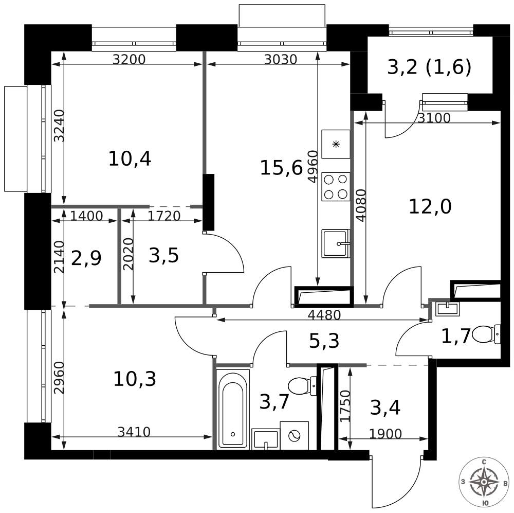 Прямая продажа от застройщика! Кладовая номер 191 общей площадью 2.1 кв. м на 3-м этаже в ЖК «1-й Саларьевский»