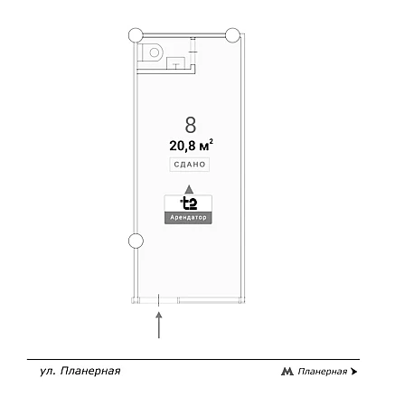 Готовый арендный момент в прямой видимости от выхода из станции метро.