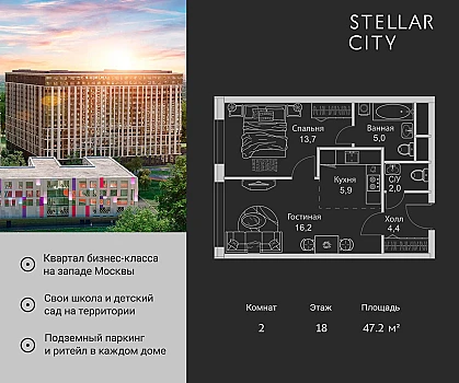 В проекте жилые дома высотой от 7 до 32 этажей, детский сад и школа. На первых этажах доступны магазины, кафе, салоны красоты и другие сервисы — чтобы купить кофе и свежий хлеб к завтраку, можно просто спуститься на лифте.