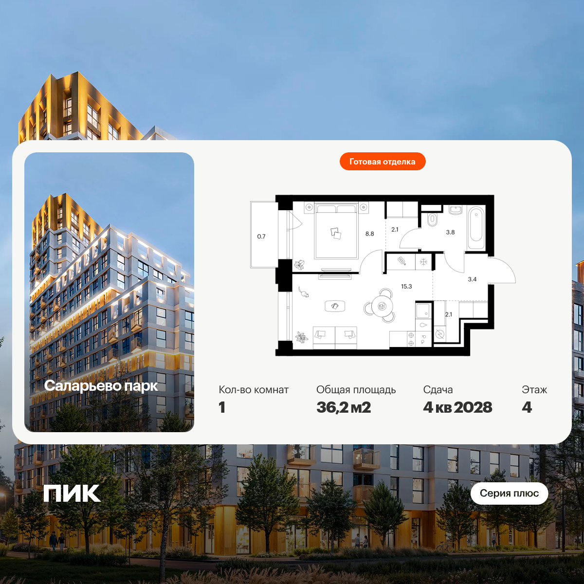 Продаётся 1-комн.квартира площадью 35.40 кв.м на 2 этаже 30 этажного дома (Корпус 1.3, секция 3) проекта ПИК 2-й Иртышский. Светлый просторный подъезд на уровне земли, функциональная планировка, большие окна, с отделкой.