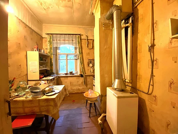 Расположен на участке 7 соток ИЖС, огорожен. Шикарное местоположение, до центра города 8 минут спокойным шагом. Состояние дома требует ремонта.