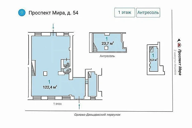 5 минут от метро Проспект Мира 🚇! Феноменальная транспортная доступность и плотная пешеходная проходимость. Рядом: бизнес-центры «Олимпик Плаза», «Монд Плаза», отели Radisson Blu, Министерство энергетики и даже Роскосмос 🚀. Развитая инфраструктура: банки, рестораны, парки в шаговой доступности.