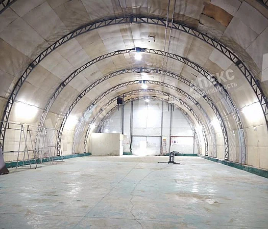 Лот №859486 Сдается в прямую аренду на охраняемой огороженной территории отапливаемый арочный ангар площадью 650 м2 c габаритами 18 м х 40 м. Высота в коньке 7,8 м. Отопление корпуса осуществляется через газовую котельную с помощью тепловентиляторов. Пол - бетонное основание с нагрузкой 4 тн/м2. Внутри ангара - обустроенный АБК для сотрудников с кабинетами и бытовыми помещениями. Отопление включено в арендную стоимость!