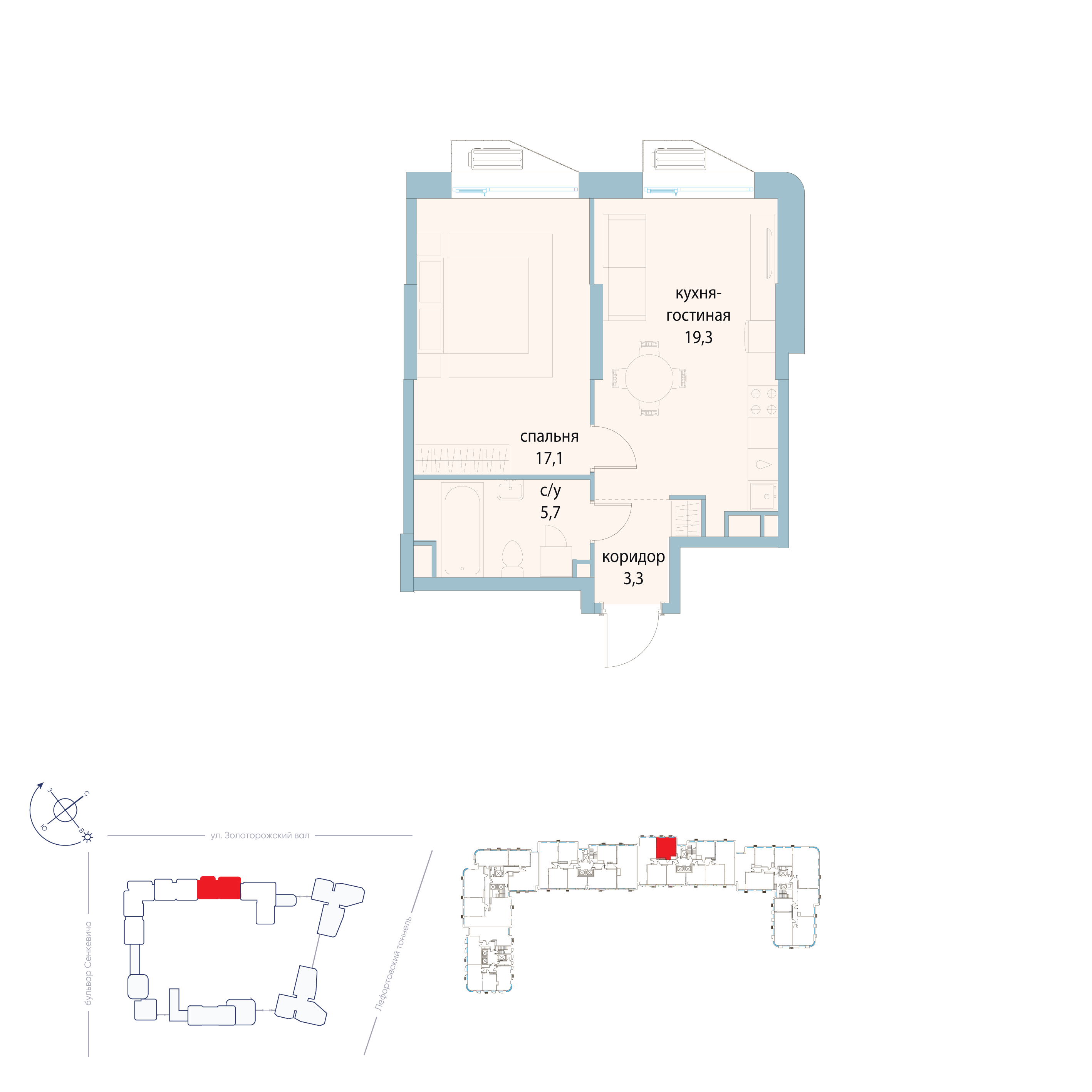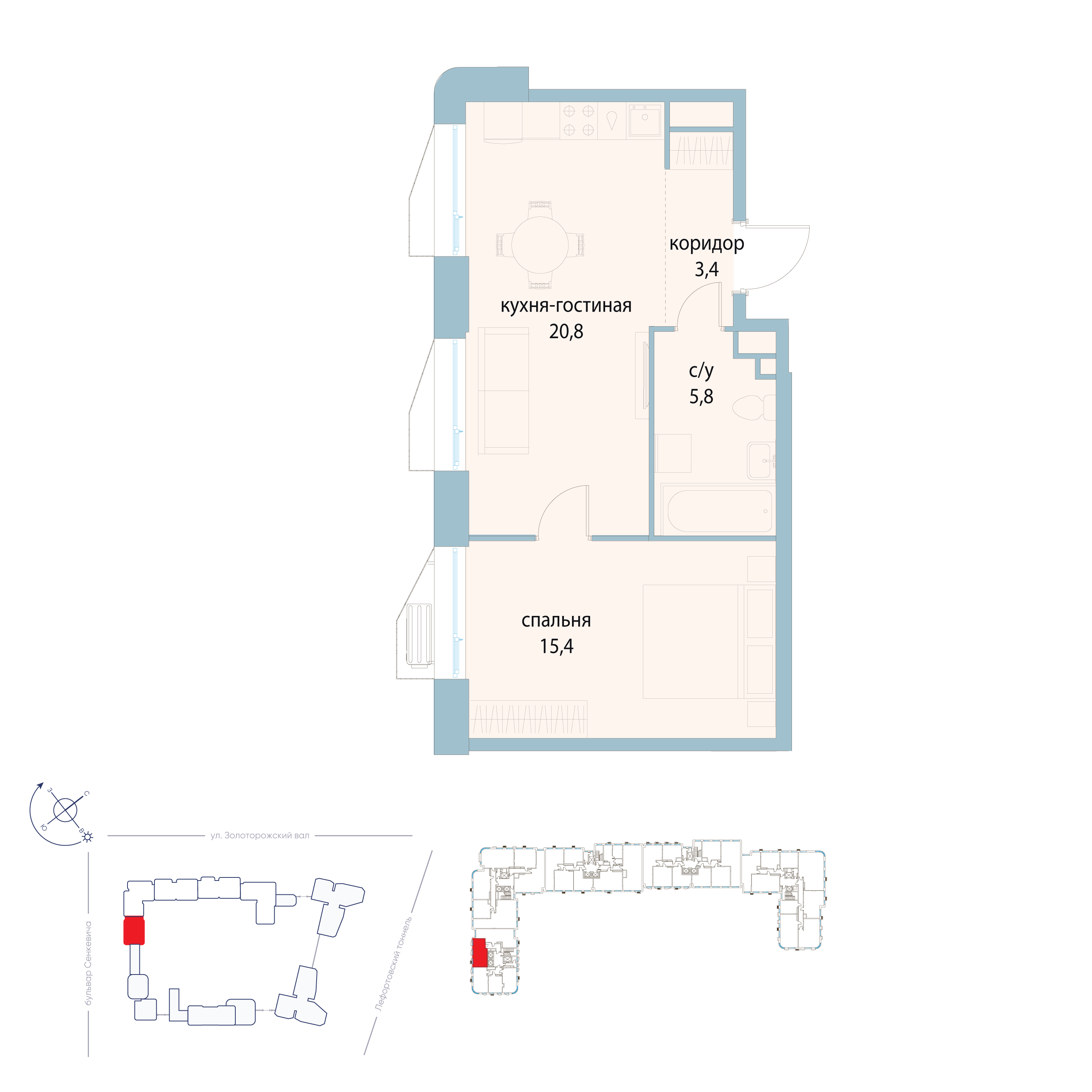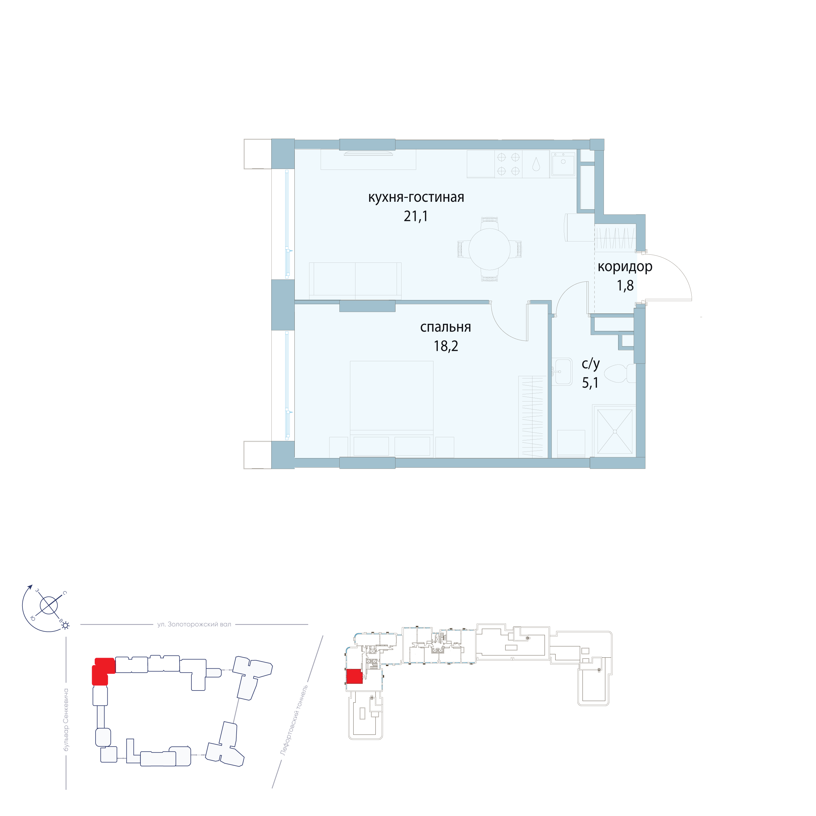 Общая площадь 63 кв.м. Идеальное пространство для жизни: просторная кухня-гостиная (20 кв.м), две изолированные комнаты (16 и 9 кв.м), два санузла и две большие лоджии.