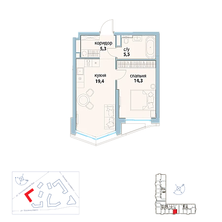 Купить 1к квартиру 44 м²