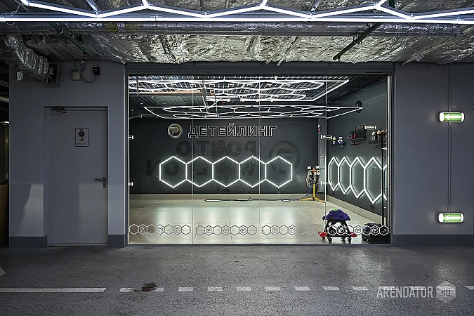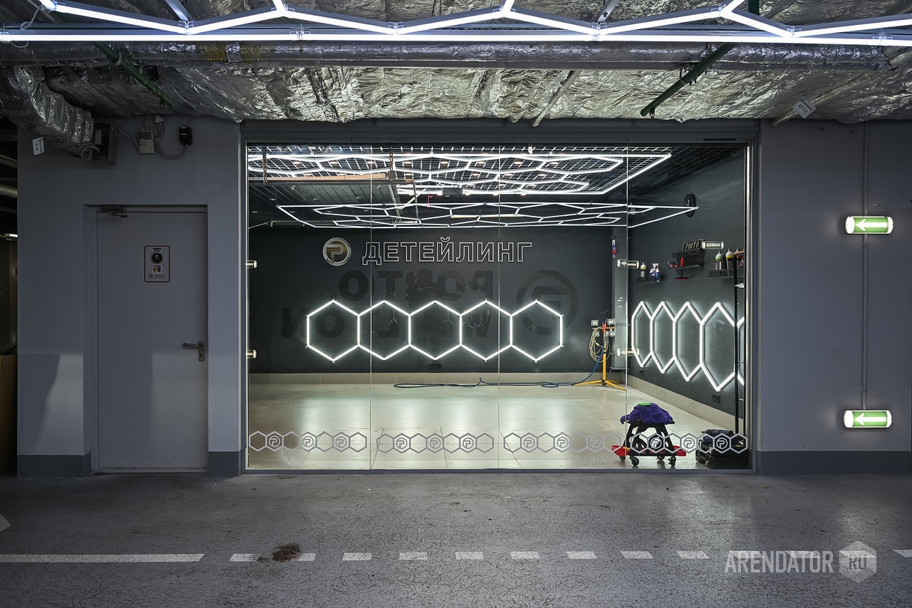 Помещение расположено в густонаселенном жилом квартале, на территории подземного паркинга на 1500 машино-мест, что обеспечивает постоянный клиентский поток. Мощное двухэтапное освещение, стильный премиальный дизайн, прозрачная стена позволяет клиентам наблюдать за процессом, все необходимые коммуникации для детейлинга.