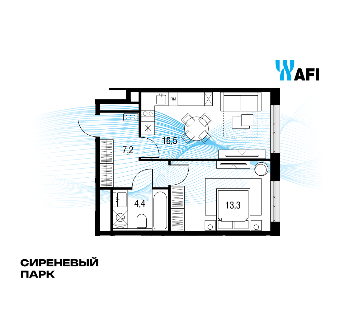 Купить 1к квартиру 41 м² в ЖК Сиреневый парк