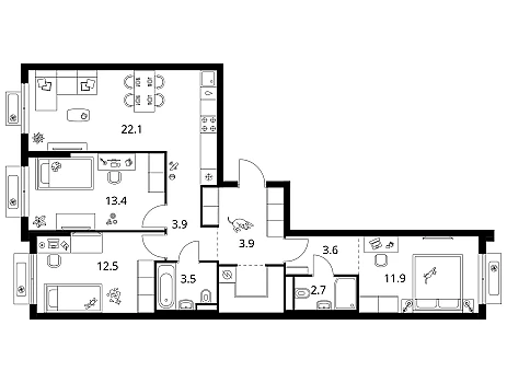 Квартира, 3-комн., 97,6 м², САО (р-н Ховрино, (м.Ховрино) | САО, р-н Ховрино, Клинская ул., д. 2А, корп. 7, этаж 4, кв. 799 | Метро: Ховрино (пешком 23 мин., транспортом 16 мин., расстояние 1.62 км)