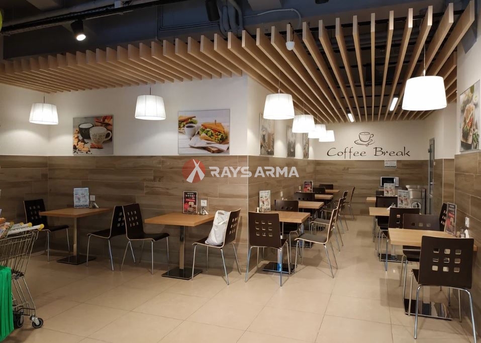 работает в большом формате: супермаркет, кафе-кулинария, алкогольный отдел, отдел косметики и бытовой химии.