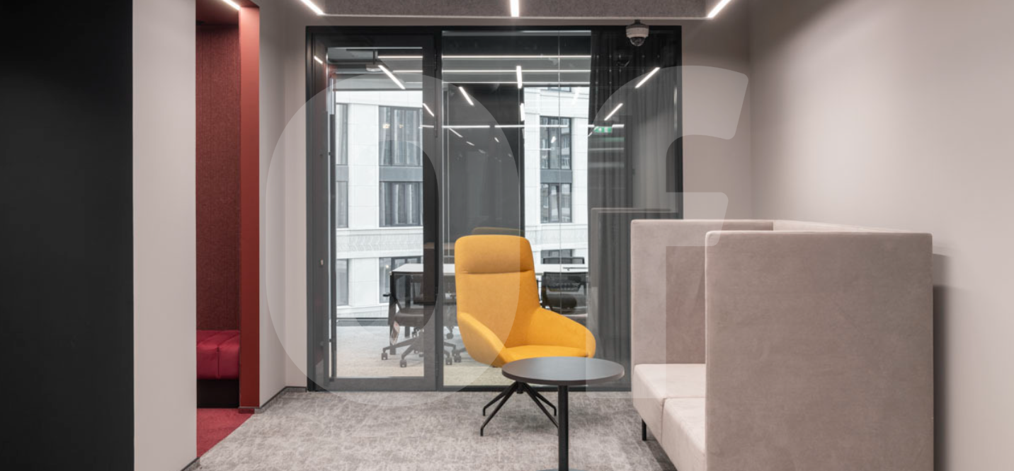 Офис предусматривает полную кастомизацию помещений под потребности клиента с возможностью размещения фирменного стиля и логотипов компании. Основной принцип — мультифункциональность, позволяющая гибко трансформировать зоны в зависимости от текущих задач. Этаж включает: переговорные комнаты разной вместимости, зоны ВКС, телефонные будки, презентационные пространства и зоны для индивидуальной работы.