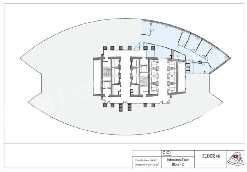 Лот №963394 Предлагается к рассмотрению просторный офис общей площадью 410 квадратных метров, расположенный на 46 этаже здания. Высокий статус объекта подчеркивается его исключительным местоположением в трех минутах ходьбы от станции метро «Деловой центр».