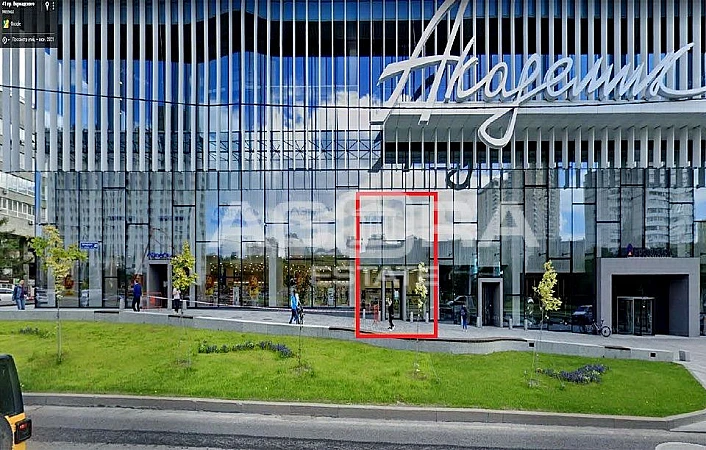 Площадь 158,8 кв.м, 1 этаж БЦ "Академик", отдельный вход с первой линии, витринное остекление, высота потолка 5,5м,