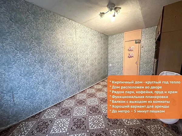 * Квартира расположена на 6 этаже 9 этажного кирпичного дома.