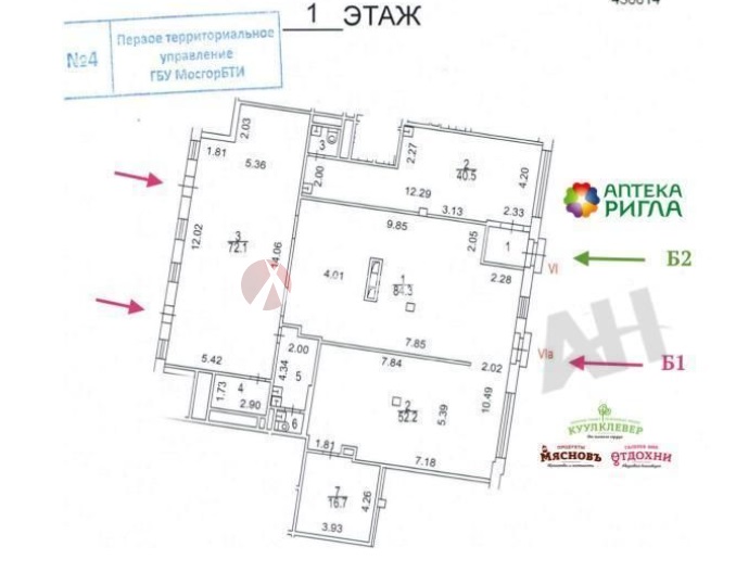 Номер лота на нашем сайте: 37122. На продажу предлагается помещение с двумя арендаторами. Объект расположен на первой линии домов, вся площадь находится на 1 этаже, планировка свободная. Высота потолков 3,2 м, эл. мощность Б1- 40 кВт и Б2- 12 кВт. Готовый арендный бизнес (ГАБ). Здание расположено в пешей доступности от станции метро. Интенсивный пешеходный и автомобильный трафик.