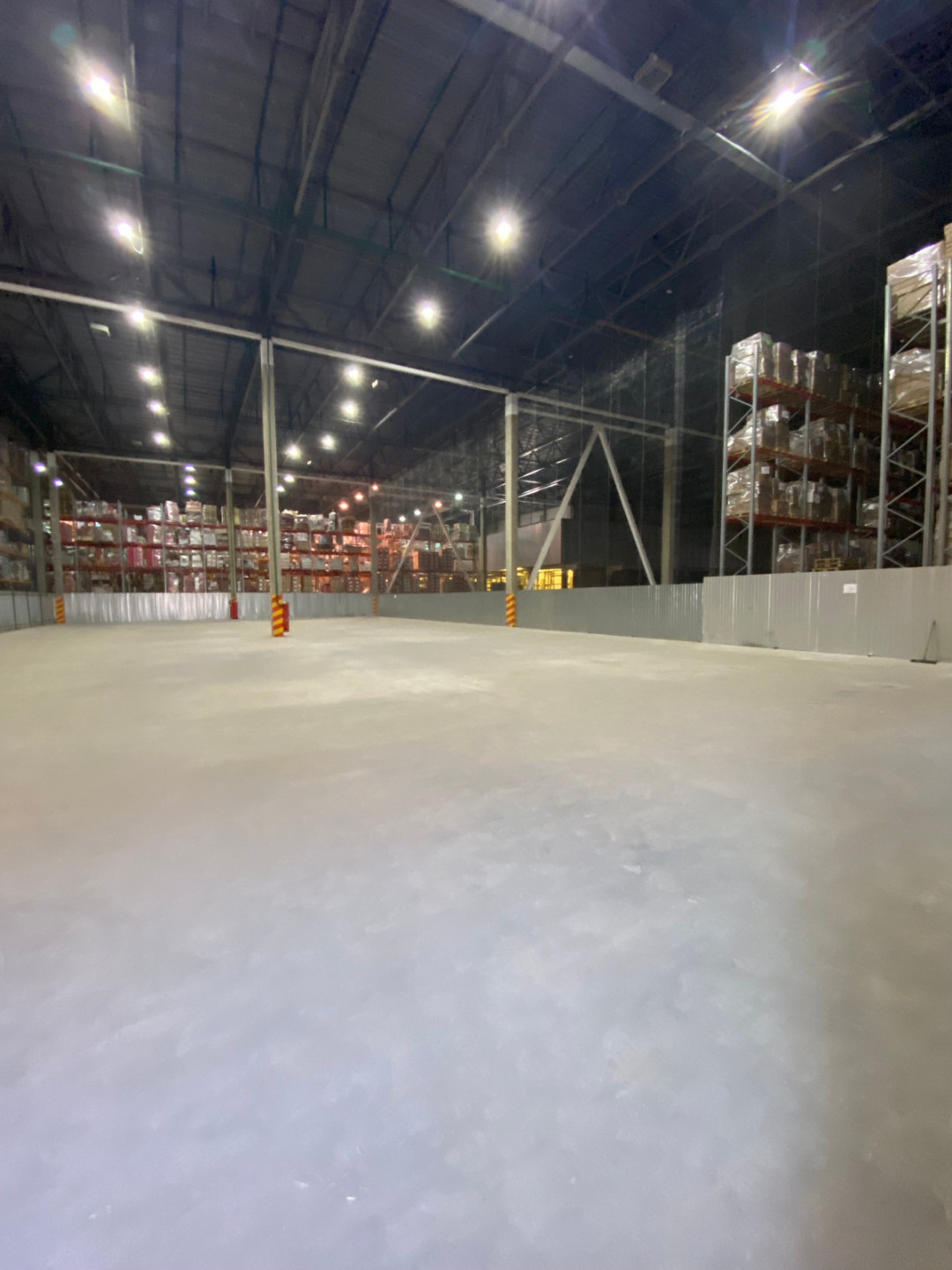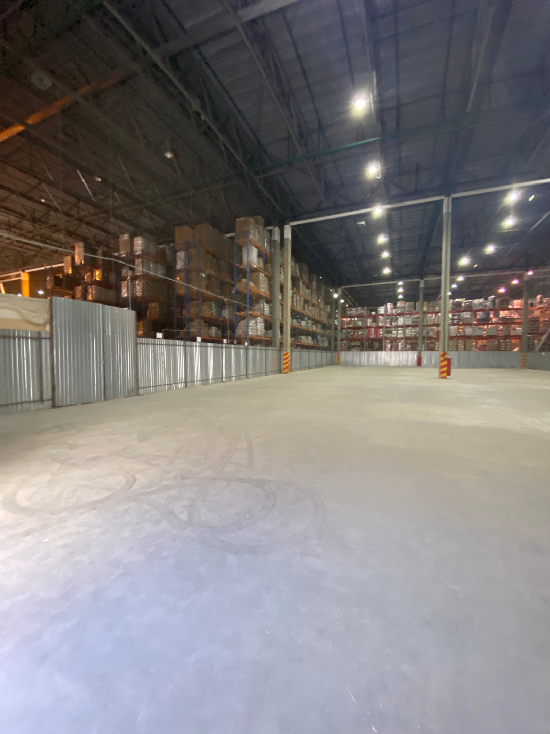 Склад состоит из свободной площади с высотой потолка 12 метров.