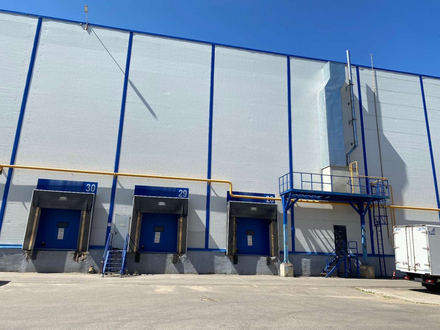 Имеются трое доковых ворот с регулируемыми рампами.